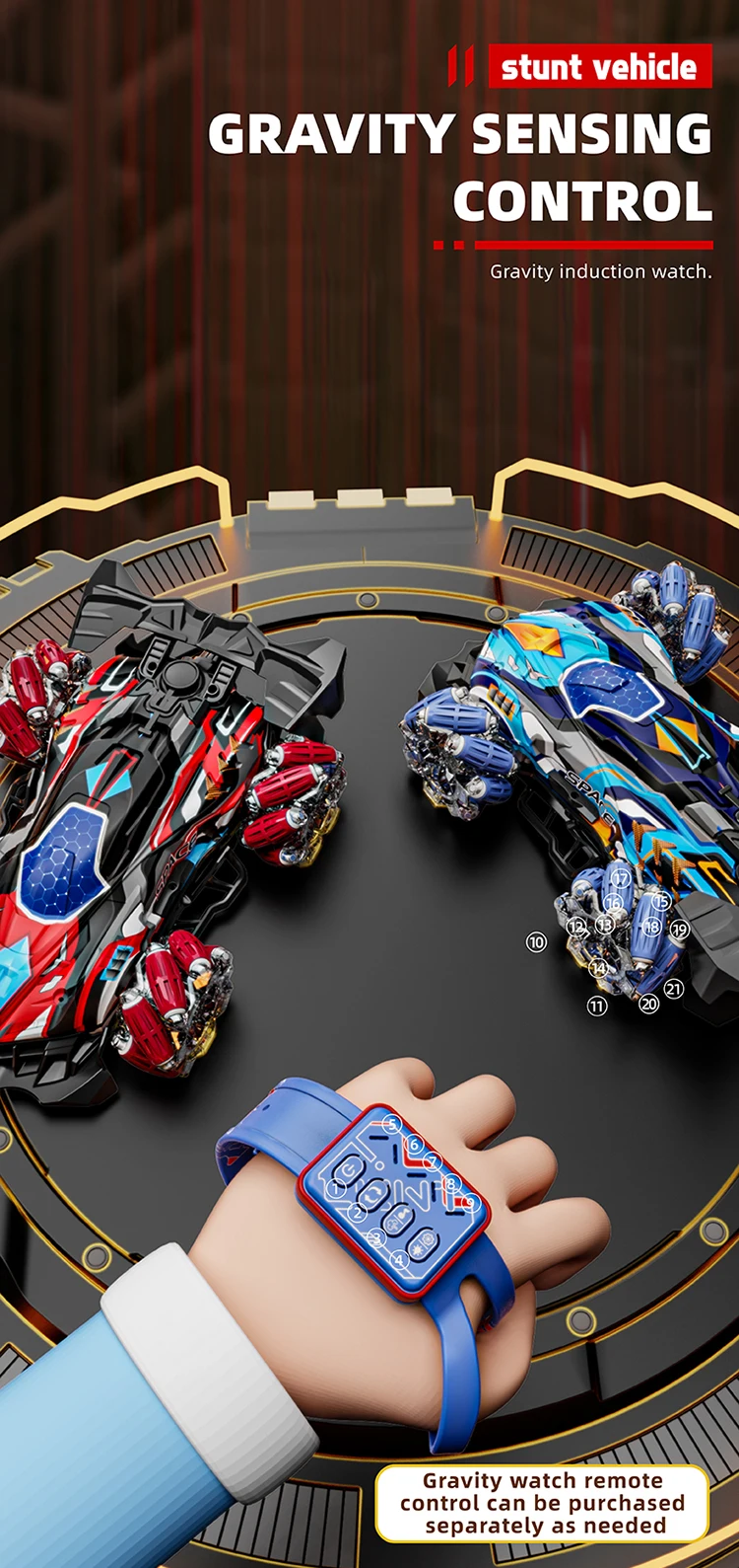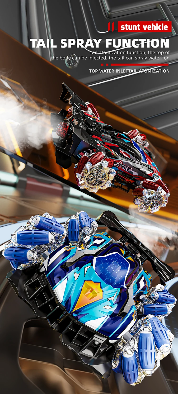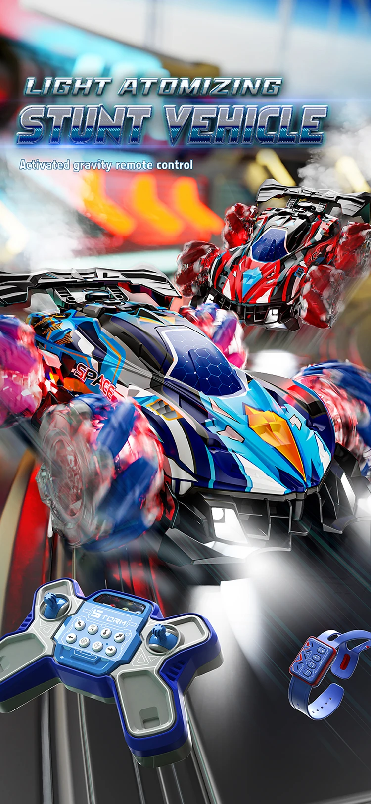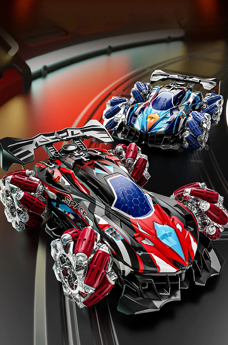 F1 RC Gesture Sensing Stunt Remote Control Car Light Music Four-Wheel Drive Off-Road Racing Toy Simulated Spray Children's Toy Gift - Double control / Blue