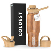 COLDEST Sports Water Bottle - 3 Lids (Chug Lid Straw Lid Handle Lid) Tumbler with Handle on Lid Water Bottles Cup Vacuum Insulated Stainless Steel Fits Cirkul Lid (36 oz Executive Wood) - Executive Wood / 36 Ounces