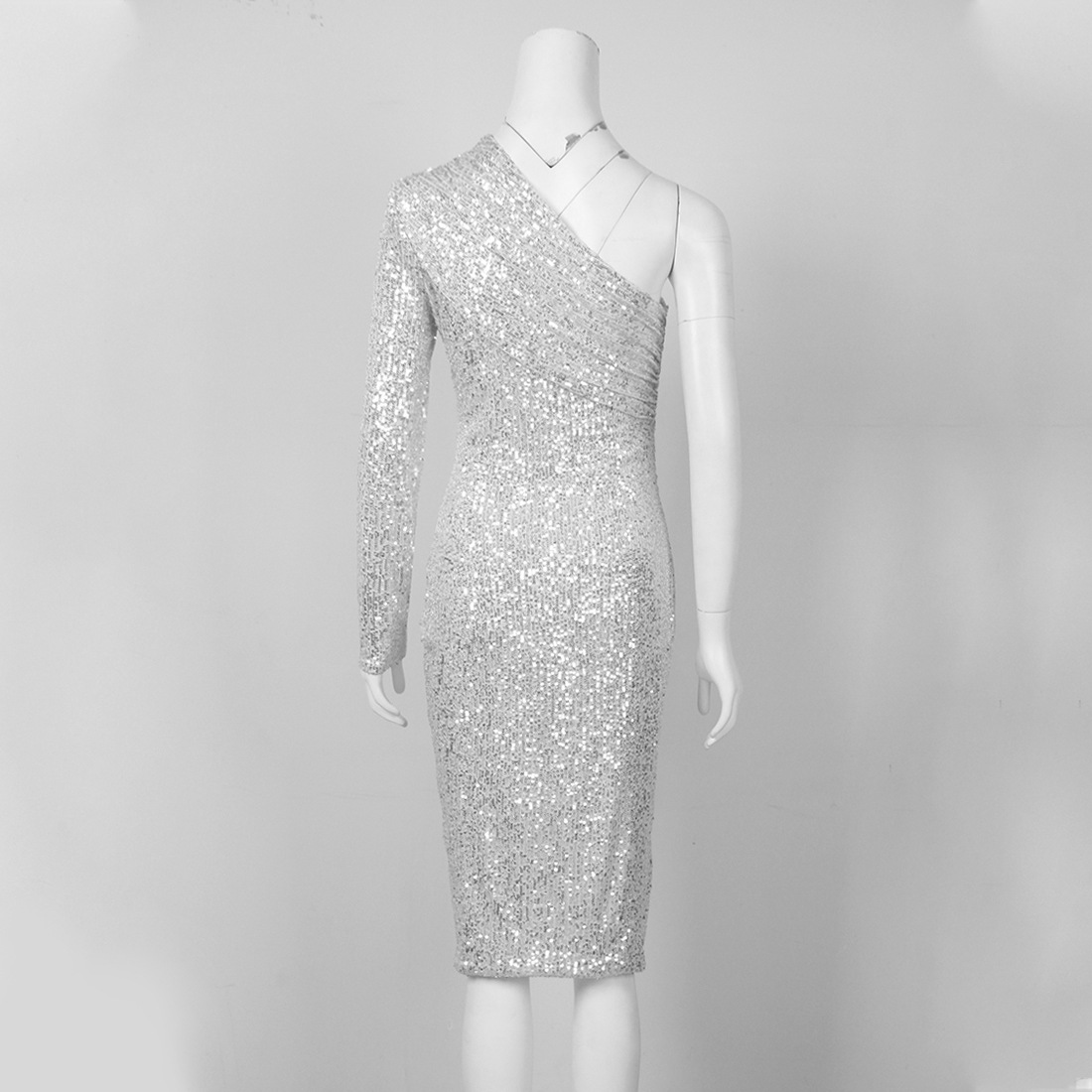 One-Shoulder Strapless Waist Sequined Shiny Catwalk Stage Dress