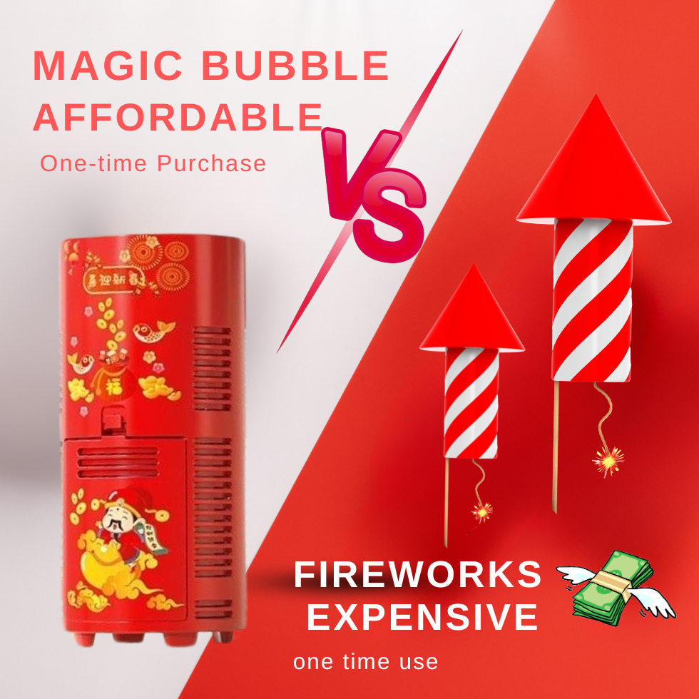 Magic Bubbles provide a one-time purchase that brings endless joy year after year. Unlike fireworks, which are expensive and only offer a brief spectacle, our bubble machine delivers sustainable fun at an affordable price.