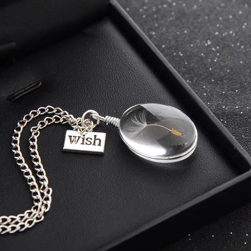 Natural Dandelion Dried Flower Pendant Necklace Double-Sided Time Gemstone Glass Glass Jewelry - Transparent