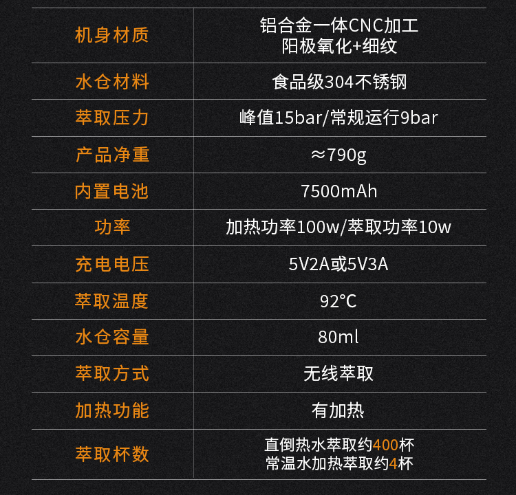 Coffee machine * 1+Type-C charging cable * 1+powder spoon * 1+powder ring press hammer * 1+cleaning brush * 1+water distribution network * 1+bracket * 1