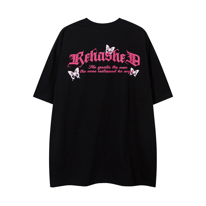Fashion Personality Butterfly Printed Short Sleeve Boys - Black / L