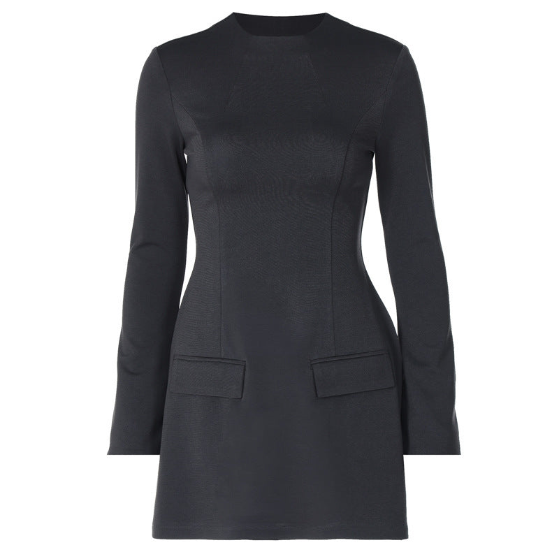 Long Sleeve Dress Sexy Waist Trimming Versatile Slimming Skirt With Zipper Trendy - Black / L