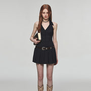 French Kikyo Hanging Neck Off Shoulder Spicy Girl Dress