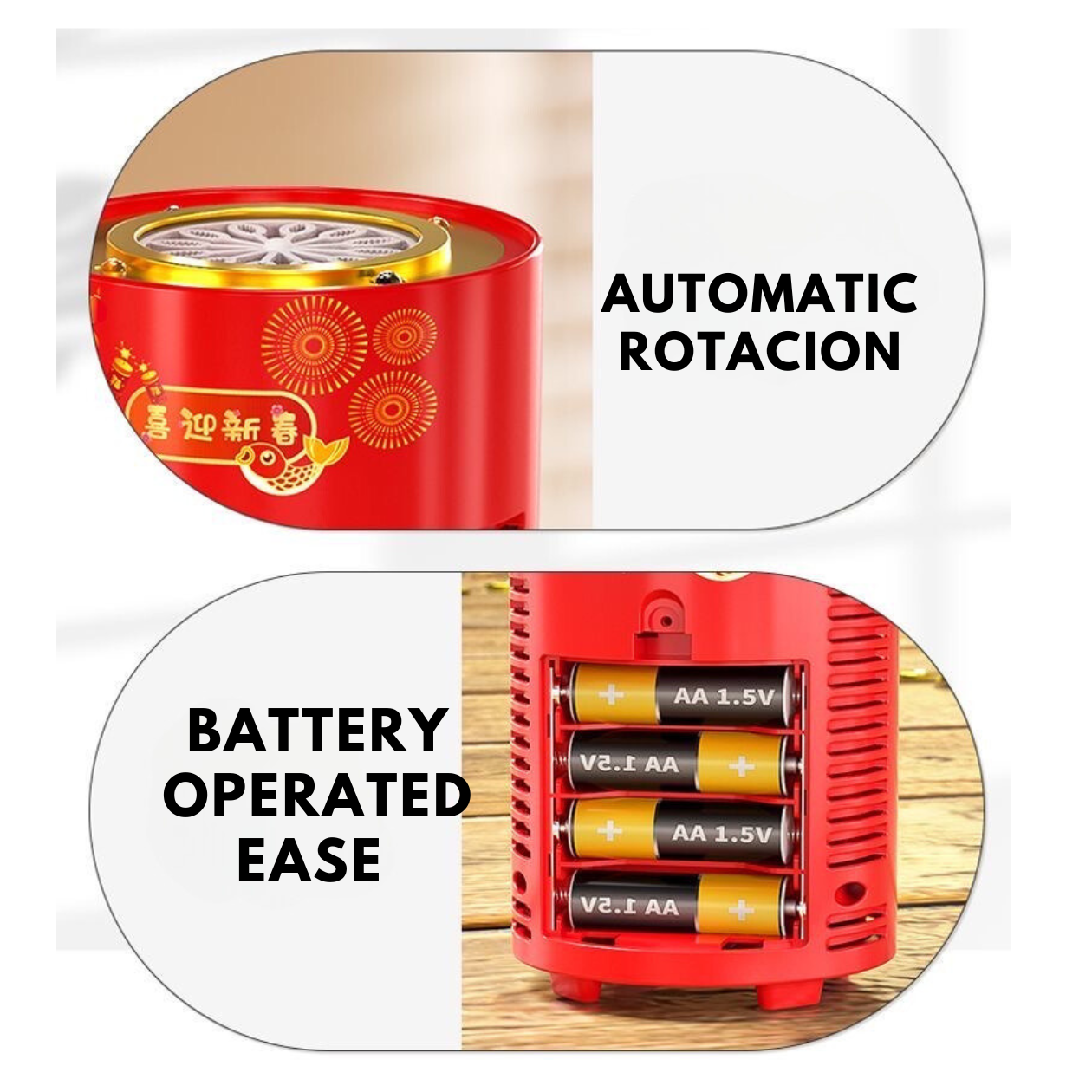 Funcionamiento silencioso, incluye pegatinas festivas y botella rellenable de 80 ml. ¡Perfecto para fiestas, Navidad y celebraciones del Año Nuevo chino!