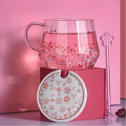 Vaso de agua de cristal con estampado de flores de cerezo en forma de diamante para niña encantadora - Blanco