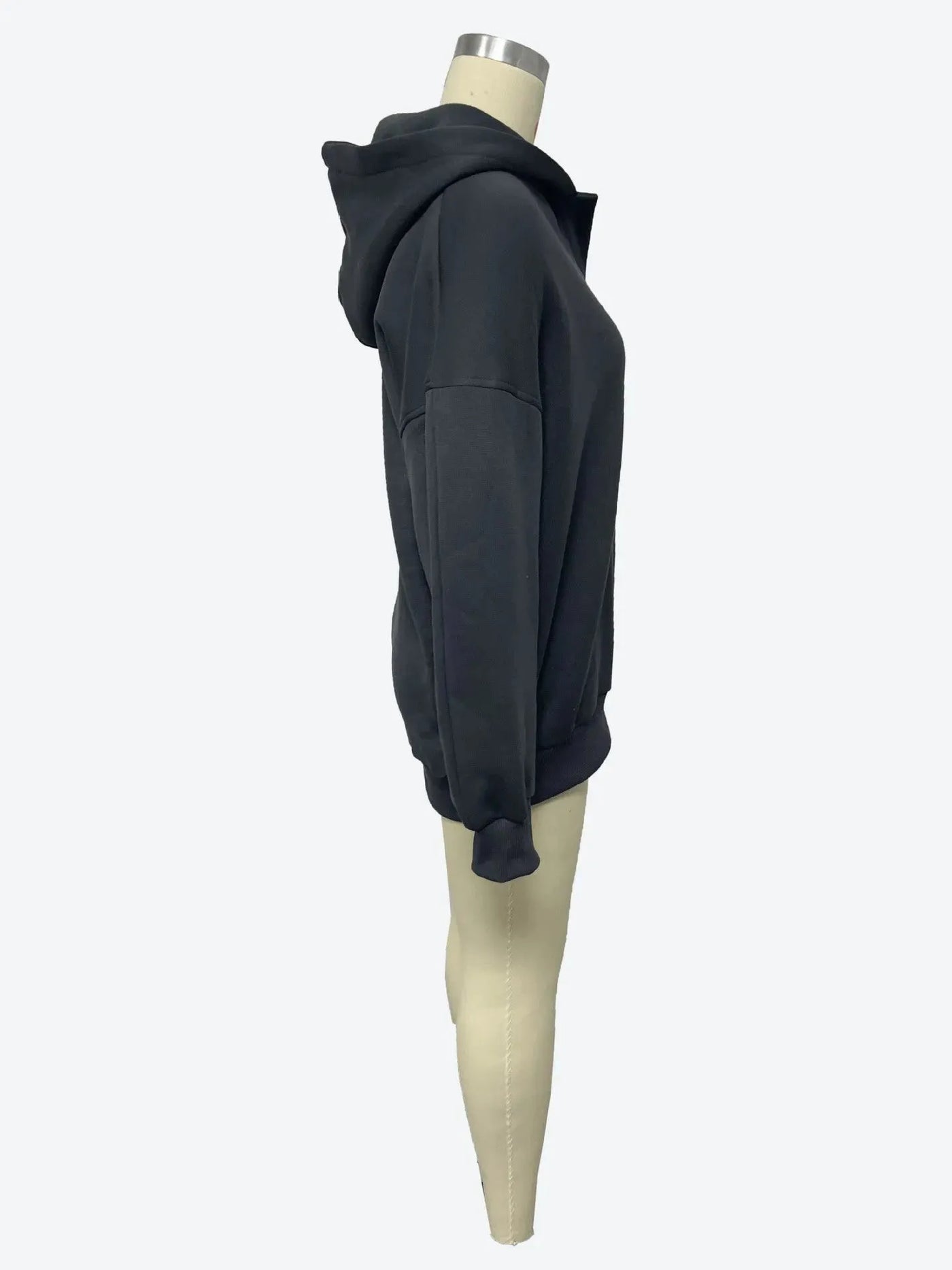 Suéter básico de manga larga con capucha y estampado, forro polar y a juego