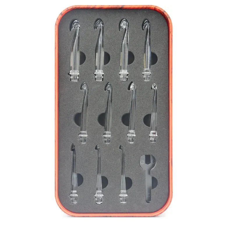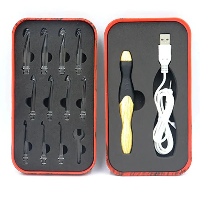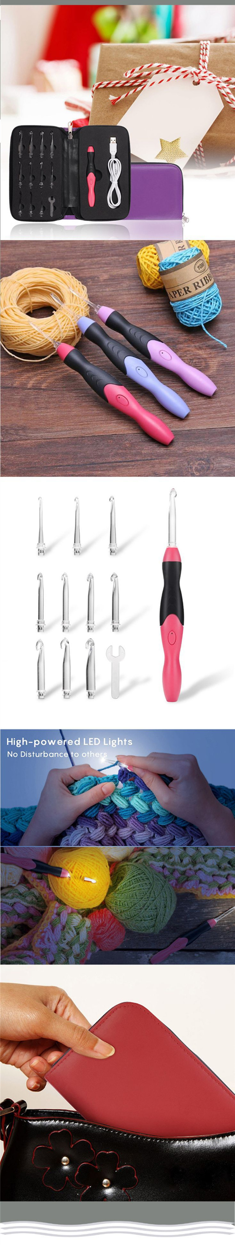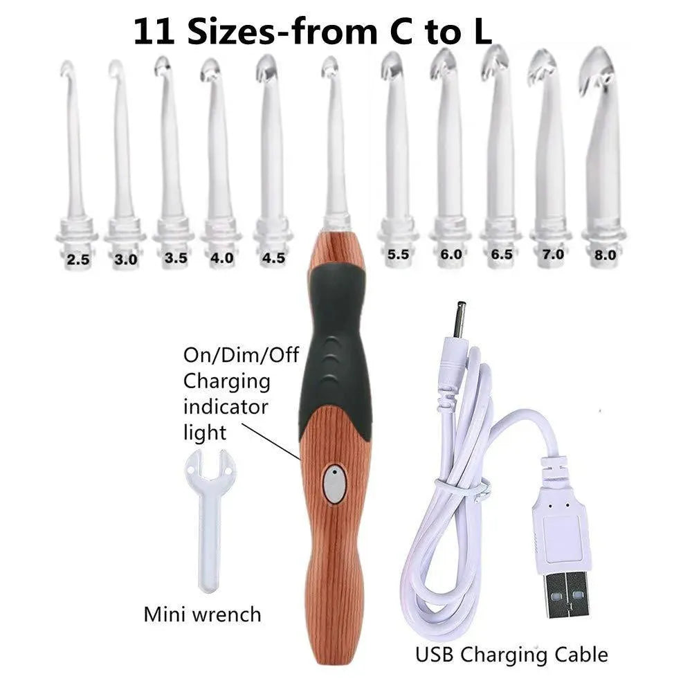 Juego de herramientas de bricolaje 11 en 1 con luz LED recargable para tejer a mano con vetas de madera - Caja de veta de madera oscura