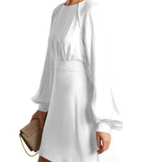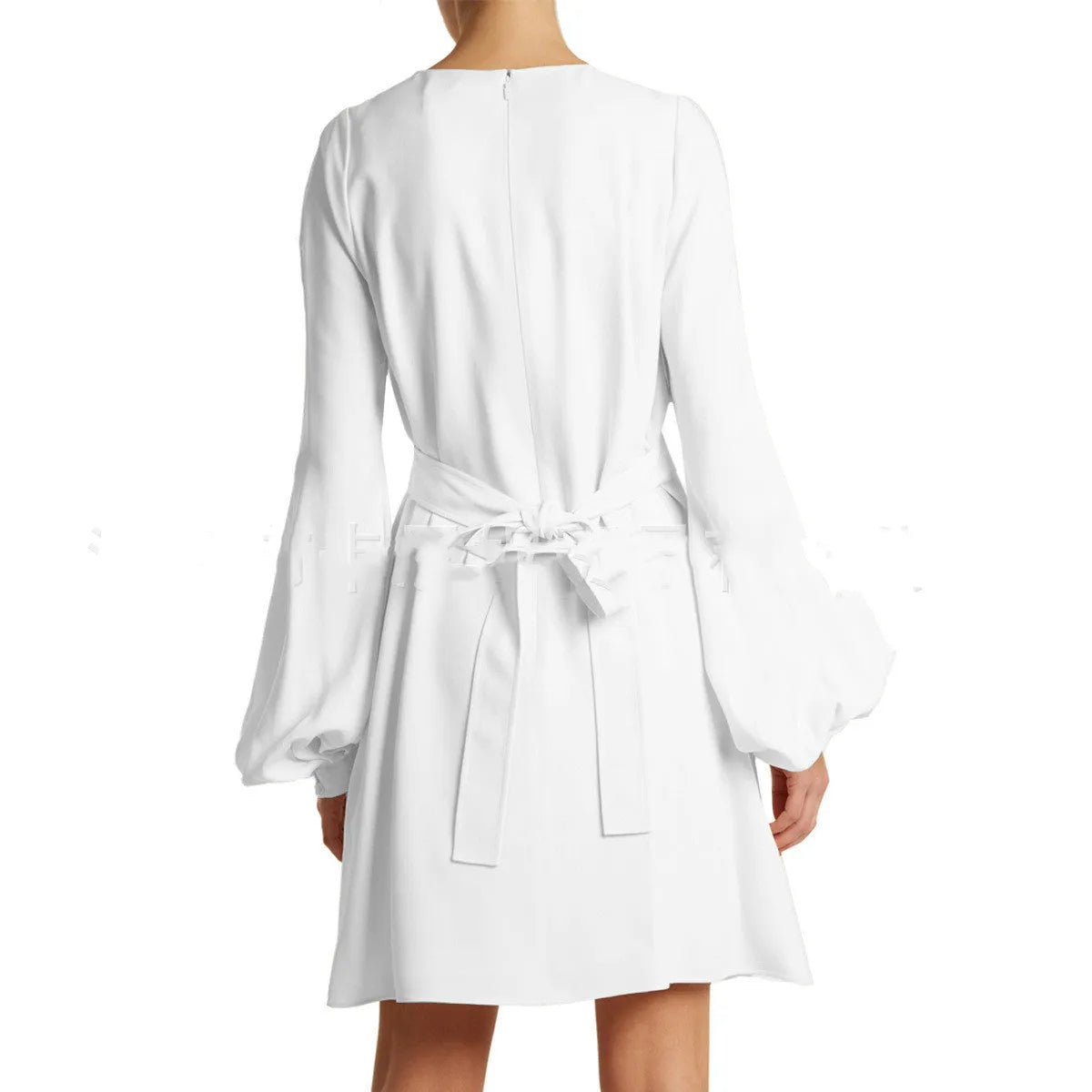 Indulge in luxury with our Round Neck Lantern Sleeve Dress. Designed with long sleeves and a high waist, this dress exudes elegance and sophistication. The bandage detailing adds a touch of exclusivity to this casual dress. Made for the modern woman, this dress is perfect for any occasion. Upgrade your wardrobe with this factory direct sales dress.