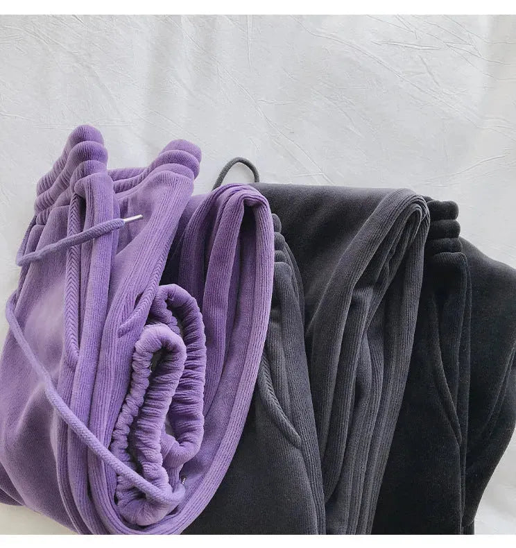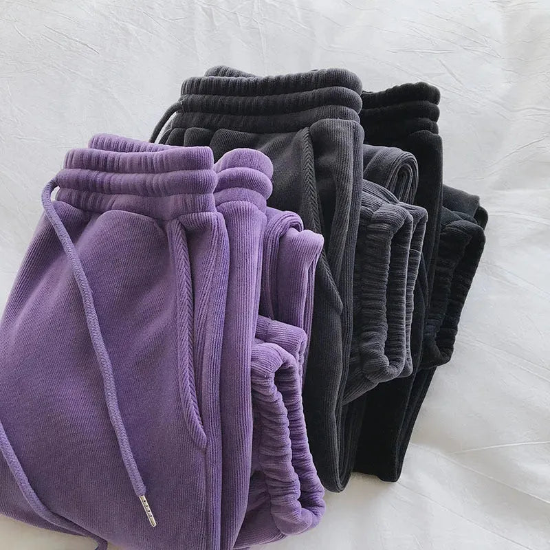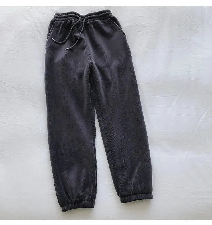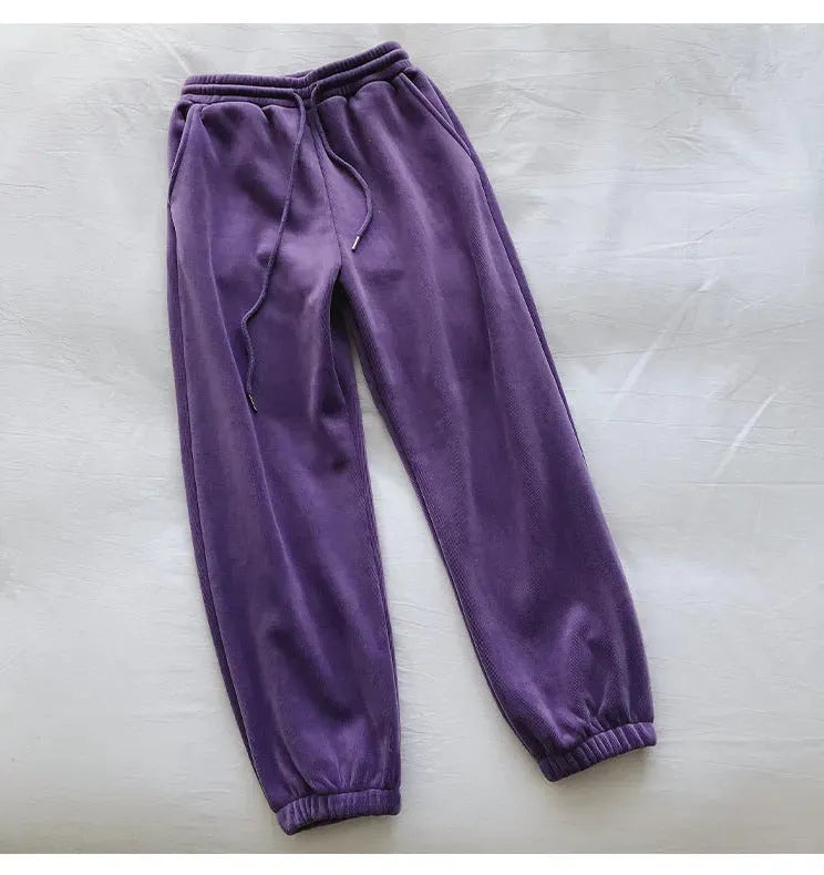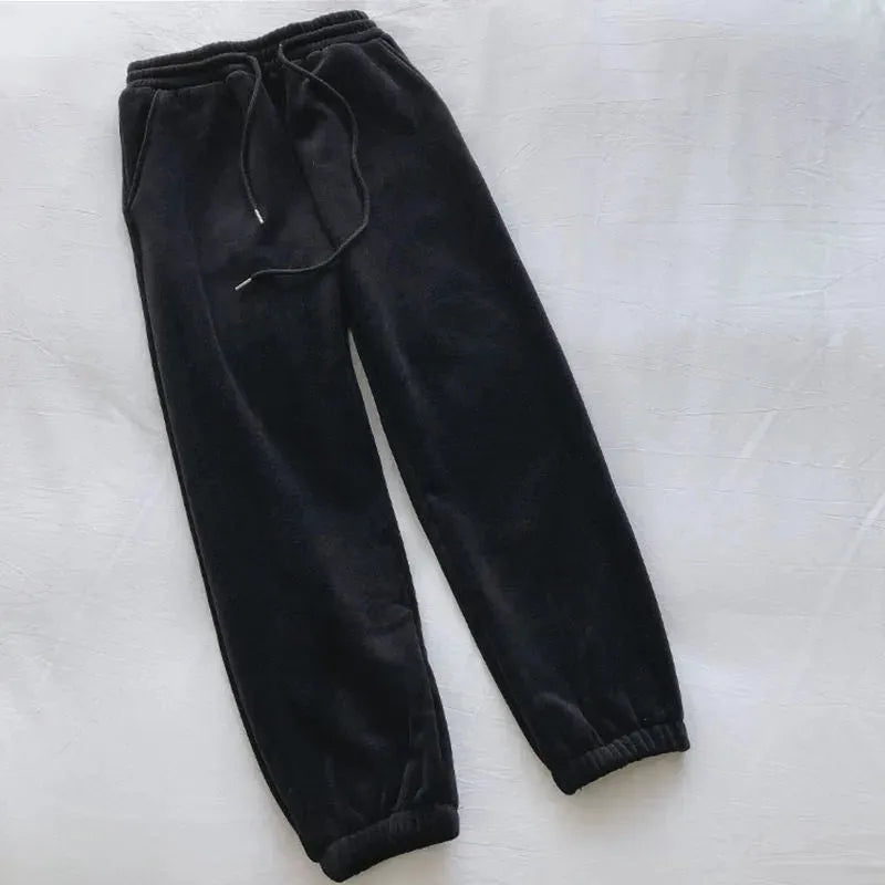 Pantalones deportivos femeninos con forro polar grueso y suelto, pantalones casuales