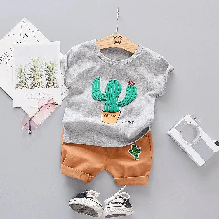 Camiseta de algodón puro con dibujos de cactus para niños y niñas de verano
