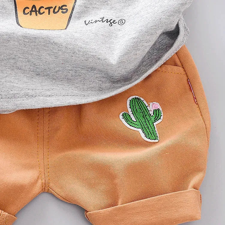 Camiseta de algodón puro con dibujos de cactus para niños y niñas de verano - Gris / 100 centímetros