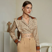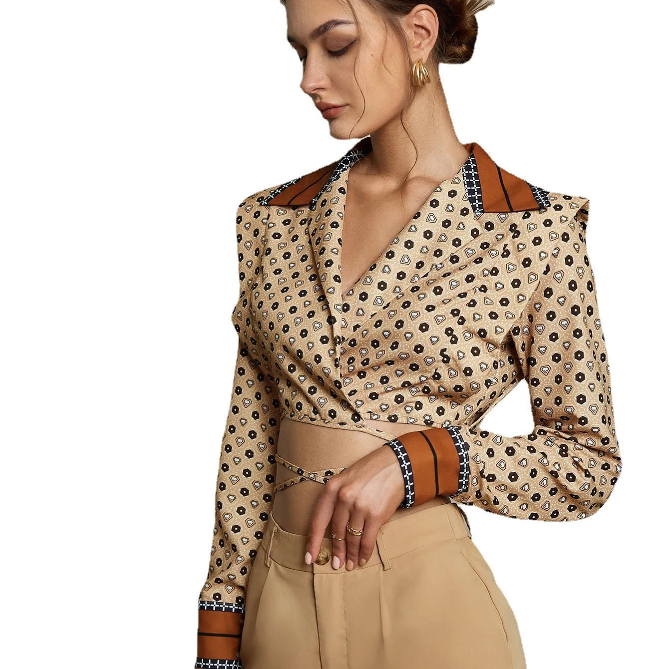 Crafted from quality polyester, this blouse features a unique graffiti pattern that adds an artistic edge to your daily commute. The sleek lapel design and slim fit silhouette create a chic, polished look that's perfect for both work and casual outings. Available in a versatile khaki color, this blouse is a must-have for those who appreciate minimalist fashion with a contemporary twist. Product Information: Fabric Name: Polyester Pattern: Graffiti Color: Khaki Size Information: Available Sizes: S, M, L This blouse is designed to provide a modern, flattering fit while keeping your look effortlessly stylish. Perfect for pairing with high-waisted trousers or skirts for a refined, minimalist aesthetic. Elevate your wardrobe with a touch of sophistication in our Minimalist Cropped Commuter Lapel Slim Fit Blouse. Made with high-quality polyester, this blouse features a one-of-a-kind graffiti print that adds a playful yet refined touch to your daily commute. The sleek lapel design and slim fit silhouette create a polished look that seamlessly transitions from work to social outings. Available in a versatile khaki shade, this blouse is a must-have for trendsetters who appreciate minimalistic fashion with a modern twist. Product Information: Fabric Name: Polyester Pattern: Graffiti Color: Khaki Size Information: Available Sizes: S, M, L With a contemporary fit designed to flatter, this blouse effortlessly elevates any outfit for a sleek and sophisticated look. Pair with high-waisted trousers or skirts for a refined, minimalist aesthetic.