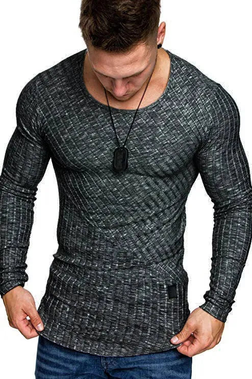 European And American Leather Label Round Collar And Long Sleeves - Blue / 2XL