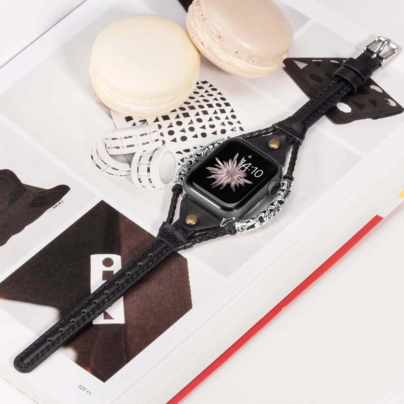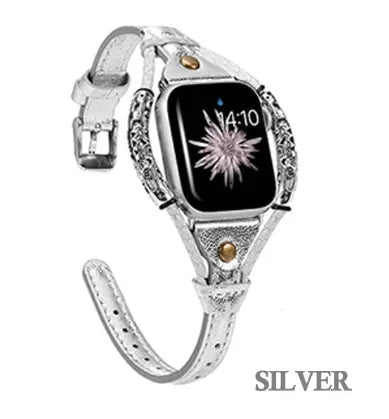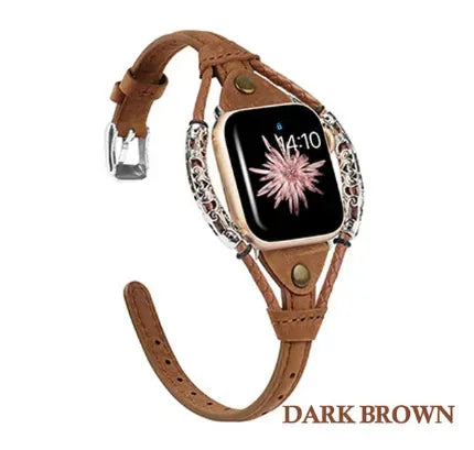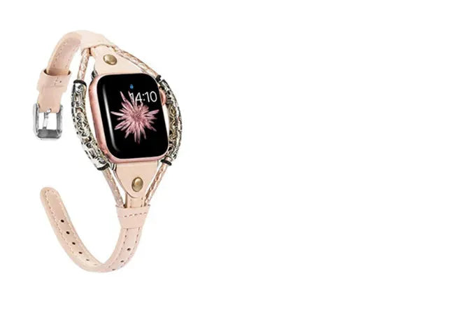 Handmade vintage metal bracelet fashion leather strap - Beige / 38mm 40mm