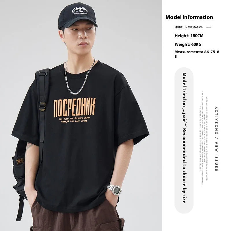 Letter Printed T-Shirt Japanese Loose Cotton Shirt