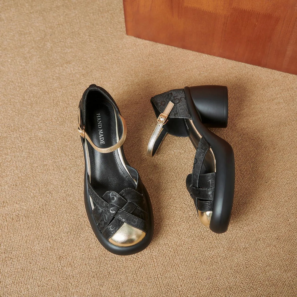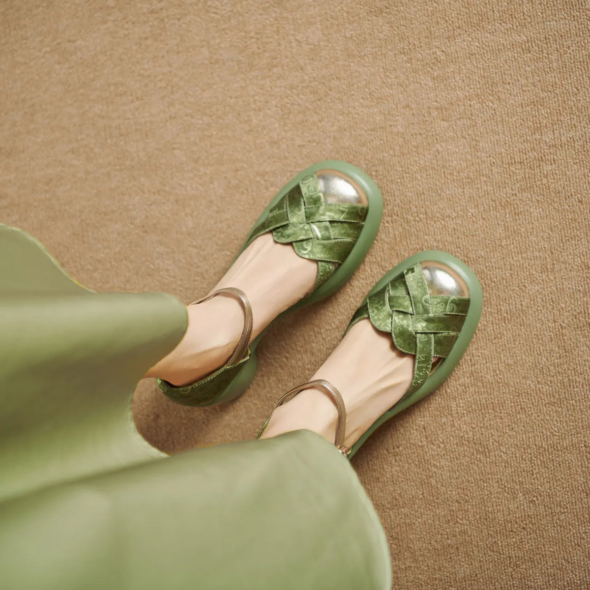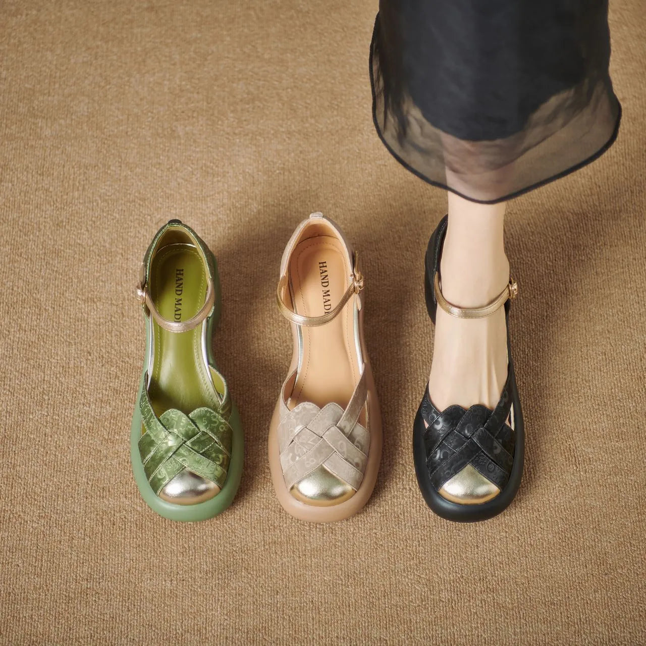 Elevate your style with our Women's Chunky Heel Soft Leather Sandals. Crafted with premium materials, these sandals feature a thick bottom and woven strap for a touch of sophistication. Enjoy all-day comfort and effortless elegance with these soft apricot sandals.