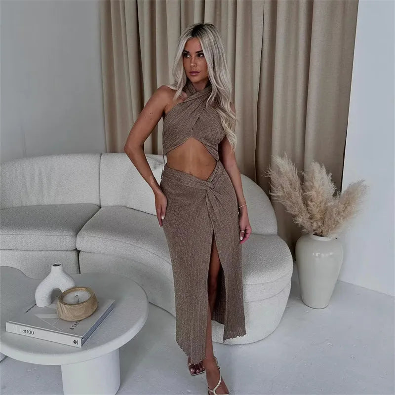 Women's Knitted Coat Mid-length Dress Set - Skirt / L